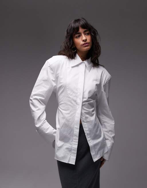 ASOS DESIGN – Vit skjorta med markerad midja i smokingdesign av bomull