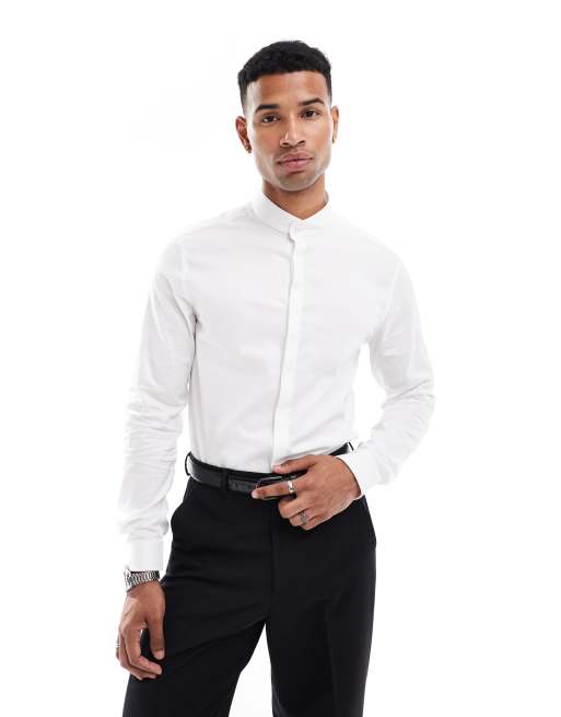 ASOS DESIGN – Vit skjorta med smal passform och murarkrage