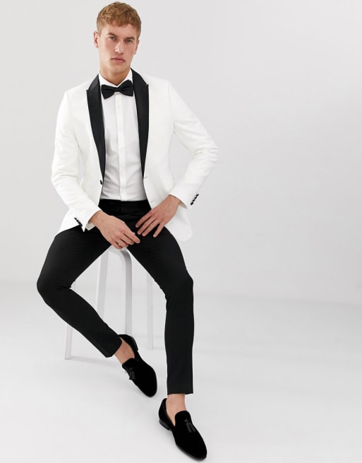 ASOS DESIGN – Vit smoking med svarta slag i extra smal passform