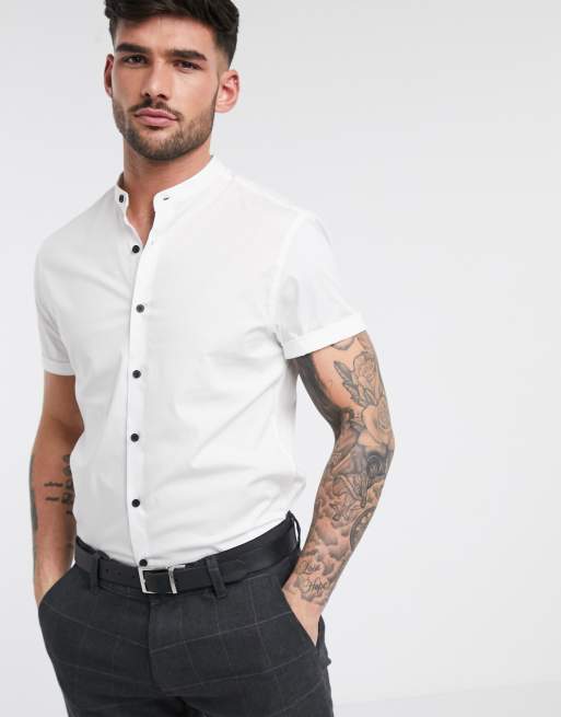 ASOS DESIGN – Vit stretchskjorta med smal passform, murarkrage och kontrasterande knappar