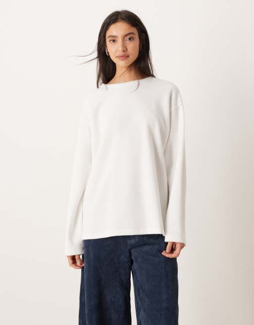ASOS DESIGN – Vit, supermjuk t-shirt i skaterstil med långa ärmar