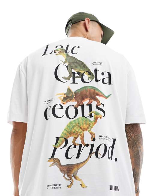 ASOS DESIGN – Vit t-shirt i oversize med dinosaurietryck baktill