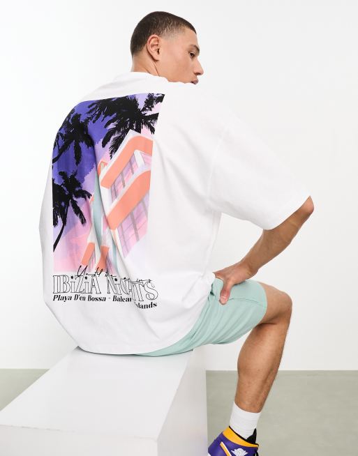 ASOS DESIGN – Vit t-shirt i oversize med Ibiza-tryck baktill