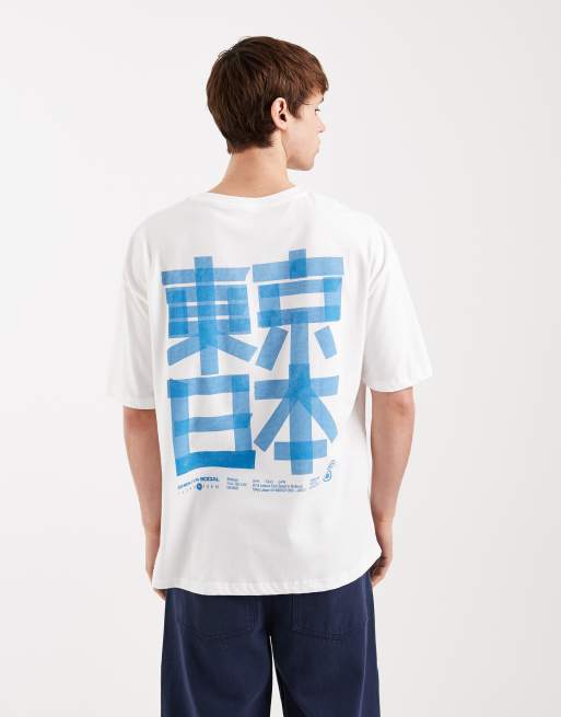 ASOS DESIGN – Vit t-shirt i oversize med japanskt tryck