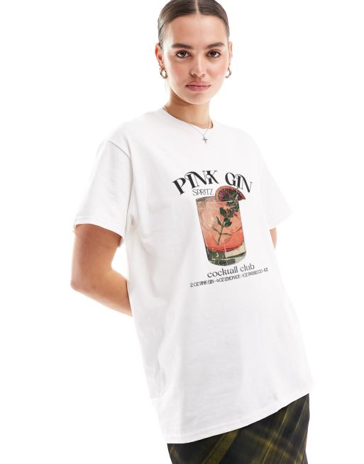 ASOS DESIGN – Vit t-shirt i oversize med "pink gin"-tryck