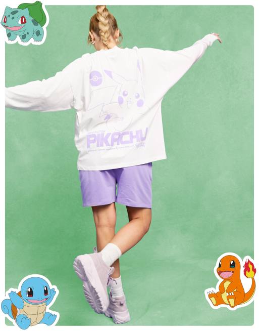 ASOS DESIGN – Vit t-shirt i oversize med Pokémon Pikachu-tryck