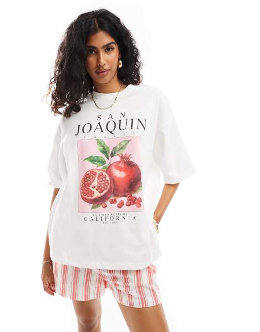 ASOS DESIGN – Vit t-shirt i oversize med "San Joaquin"-tryck