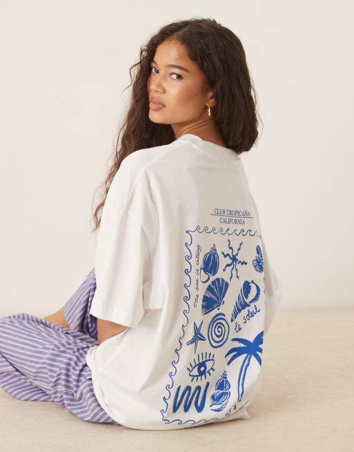 ASOS DESIGN – Vit t-shirt i oversize med snäcktryck baktill