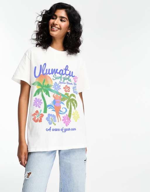ASOS DESIGN – Vit t-shirt i oversize med surftryck