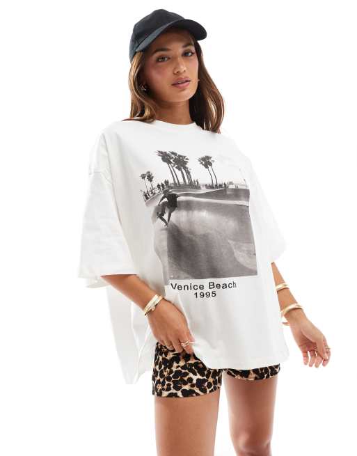 ASOS DESIGN – Vit t-shirt i oversize med 'Venice Beach'-fototryck