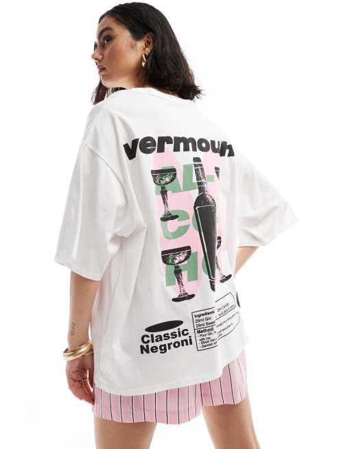 ASOS DESIGN – Vit t-shirt i oversize med Vermouth-tryck baktill