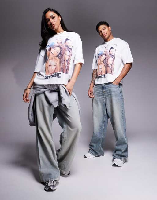 ASOS DESIGN – Vit t-shirt i oversize och unisex-modell med boxig passform och Spice Girls-tryck