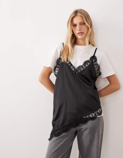 ASOS DESIGN – Vit t-shirt i oversized fit i spets och satin med överlager