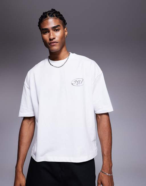 ASOS DESIGN – Vit t-shirt med boxig oversize-passform och text