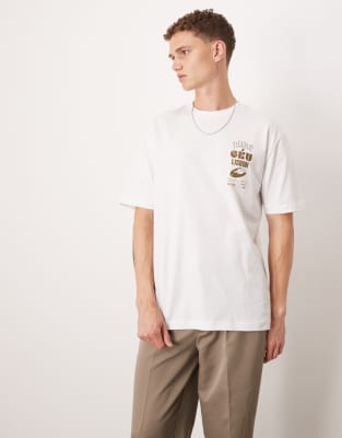 ASOS DESIGN – Vit t-shirt med tryck och avslappnad passform