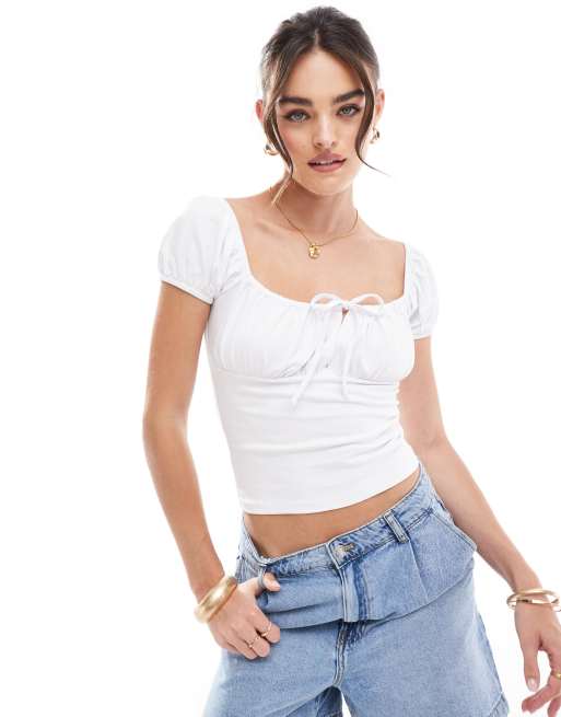 ASOS DESIGN – Vit topp i milkmaid-modell med knytning framtill