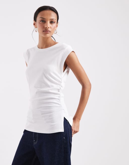 ASOS DESIGN – Vit topp med korsettmidja och axeldetalj