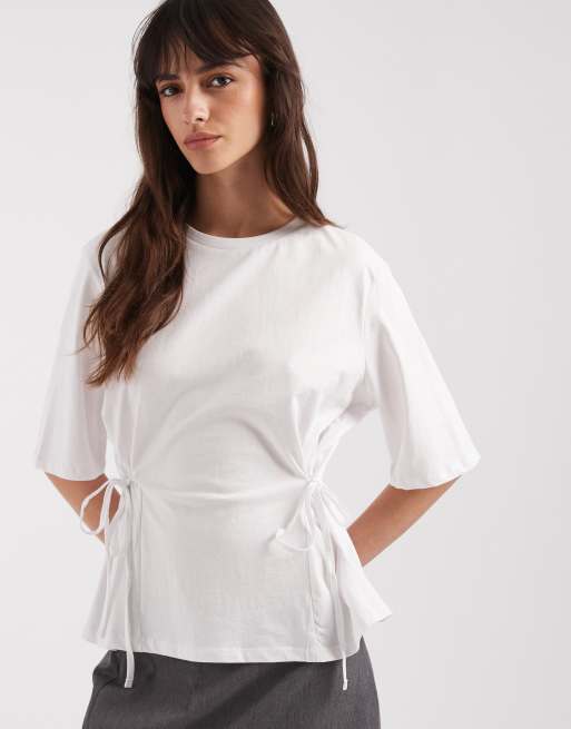 ASOS DESIGN – Vit topp med korta ärmar och knytning i midjan