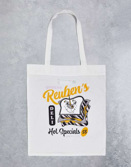 ASOS DESIGN – Vit tunn toteväska med mattryck