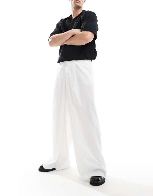 ASOS DESIGN – Vita finbyxor med extra vida ben och veck framtill