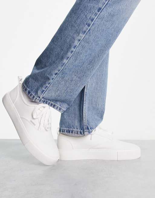 ASOS DESIGN – Vita grova sneakers i textil med snörning