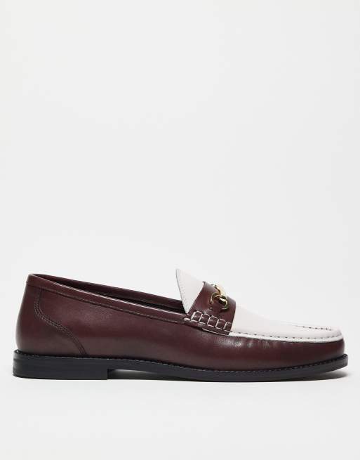 ASOS DESIGN – Vita och vinröda loafers i läder