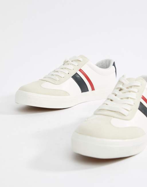 ASOS DESIGN – vita retro träningsskor med marinblå och röda ränder
