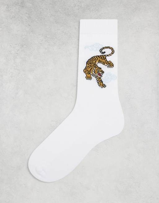 ASOS DESIGN – Vita strumpor med broderad tiger