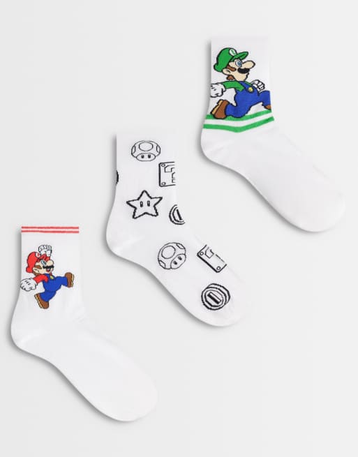ASOS DESIGN – Vita strumpor med Mario-tryck, 3-pack