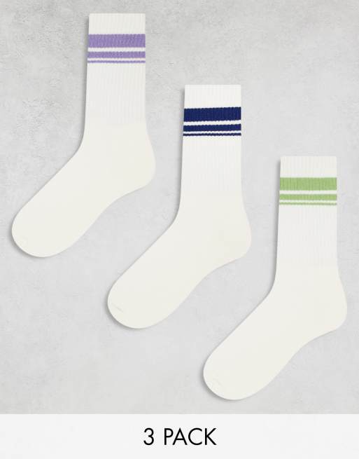 ASOS DESIGN – Vita strumpor med tre ränder, 3-pack