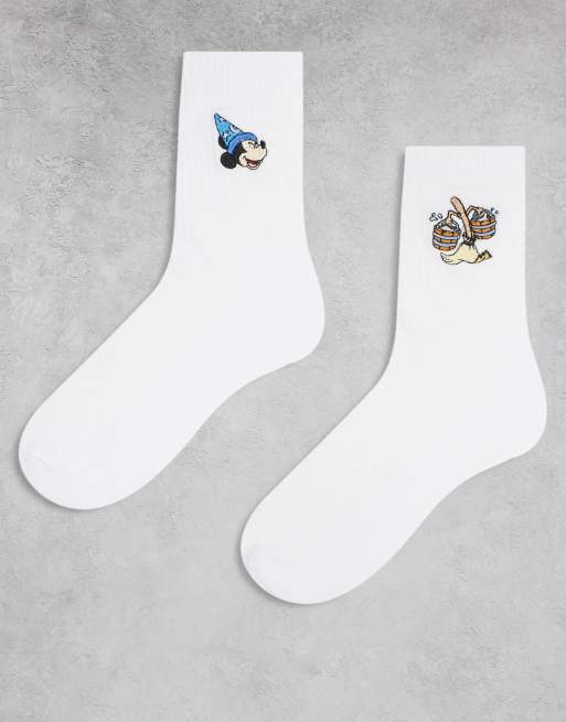 ASOS DESIGN – Vita strumpor med tryck från Disney's Musse Pigg ur Fantasia, 2-pack