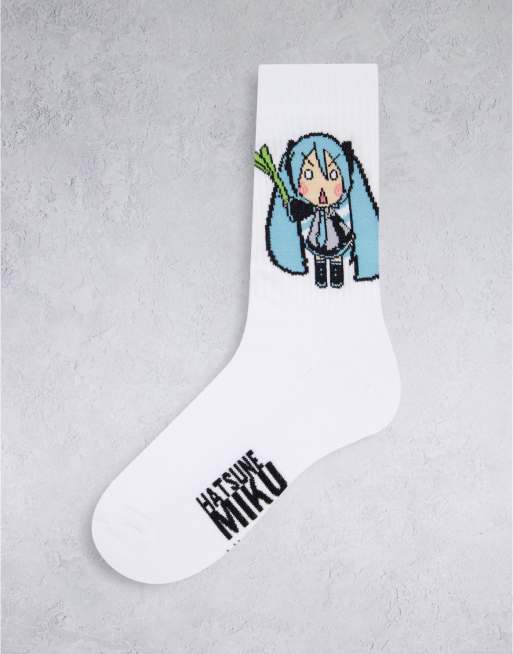 ASOS DESIGN – Vita träningsstrumpor med Hatsune Miku-tryck