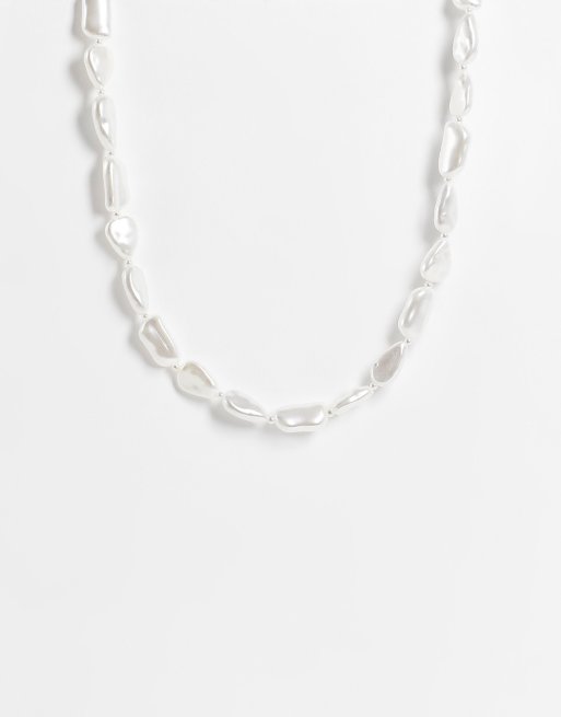 ASOS DESIGN – Vitt halsband med t-stav och syntetpärlor