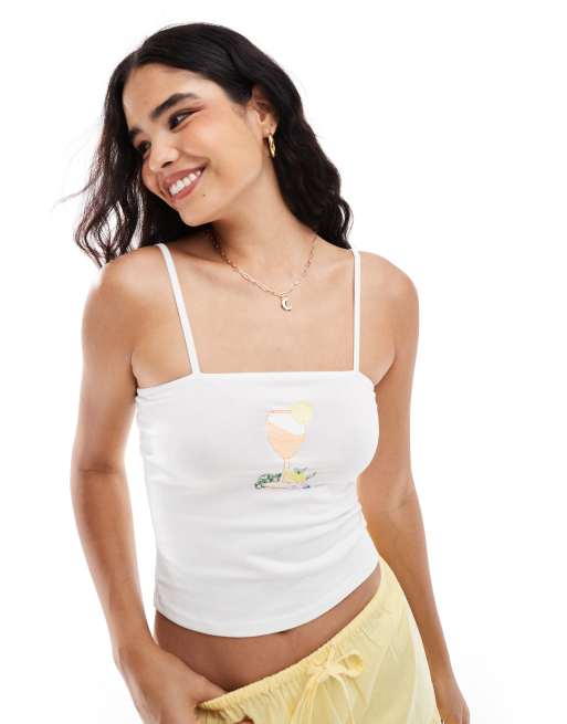 ASOS DESIGN – Vitt linne med axelband och broderat semestertryck