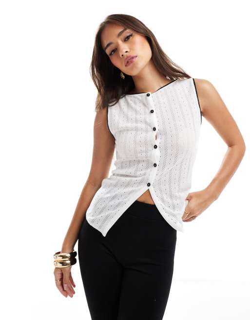 ASOS DESIGN – Vitt, pointellestickat linne med knäppning