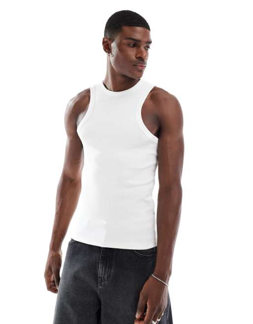 ASOS DESIGN – Vitt, ribbat baslinne i muscle fit med brottarringning