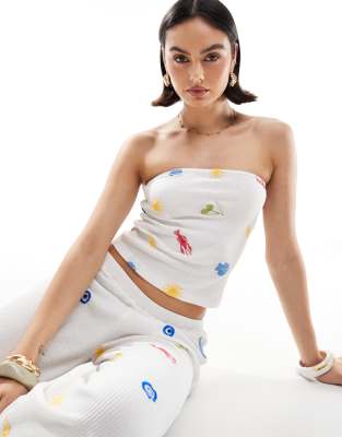 ASOS DESIGN – Vitt, våfflat set med bandeau-topp och broderi med helgmotiv