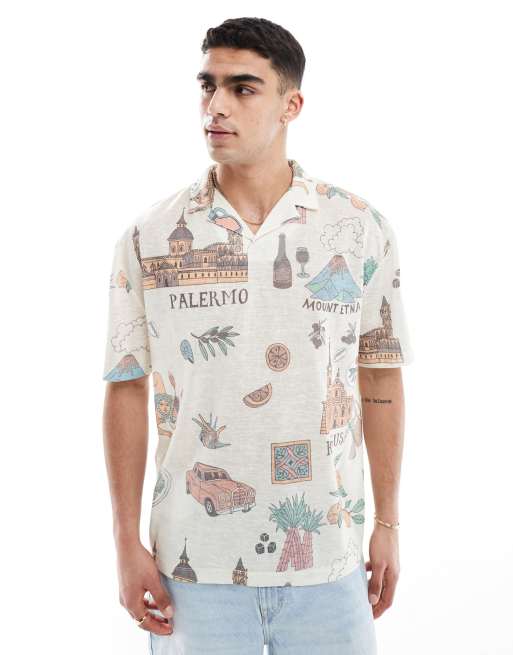 ASOS DESIGN – Vykortsmönstrad pikétröja i oversize