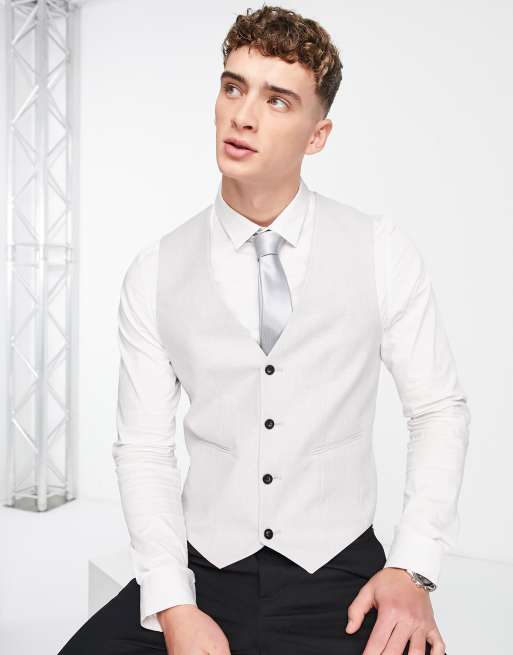 ASOS DESIGN Wedding – Beige supersmal kostymväst med microtextur
