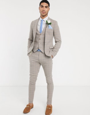 ASOS DESIGN wedding – Beigerutig kavaj i ullblandning med extra smal passform