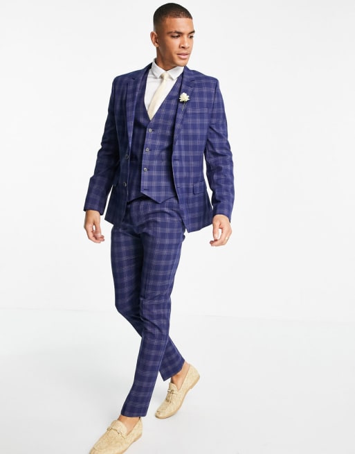 ASOS DESIGN Wedding – Blå- och grårutig kostym med extra smal passform