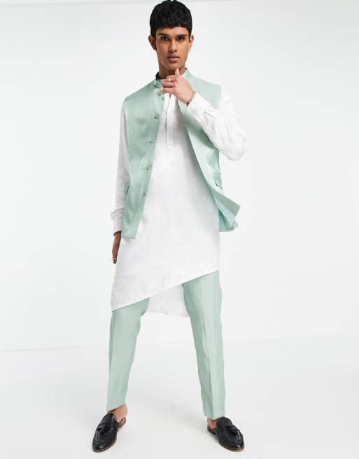 ASOS DESIGN Wedding – Gröna glansiga kostymbyxor