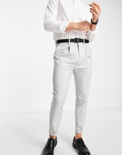 ASOS DESIGN Wedding – Isgrå, avsmalnande finbyxor med mikrostruktur