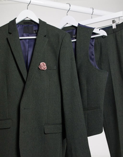 ASOS DESIGN Wedding – Khakifärgad kostym i ullblandad twill med supersmal passform