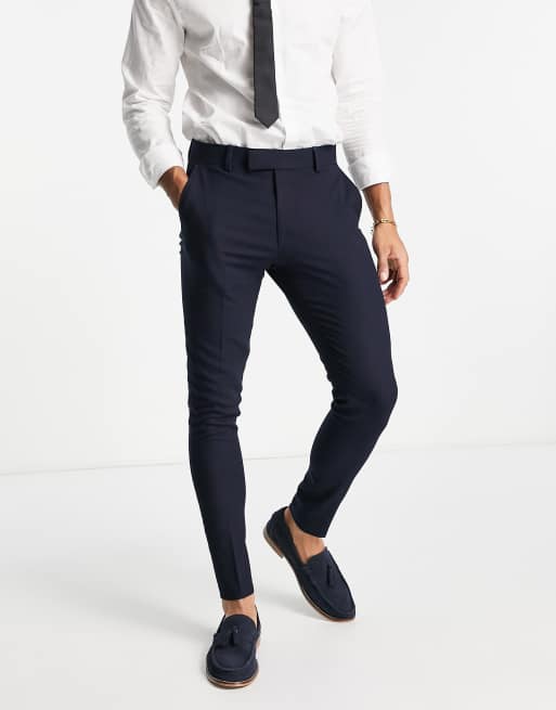 ASOS DESIGN Wedding – Marinblå kostymbyxor med supersmal passform och mikrostruktur