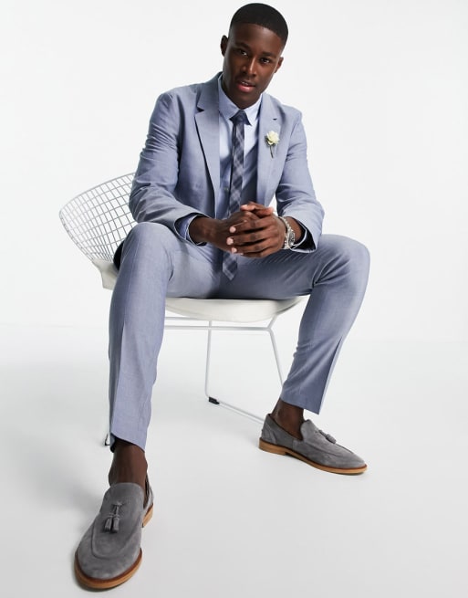 ASOS DESIGN Wedding – Mellanblå melerad kostym i extra smal passform