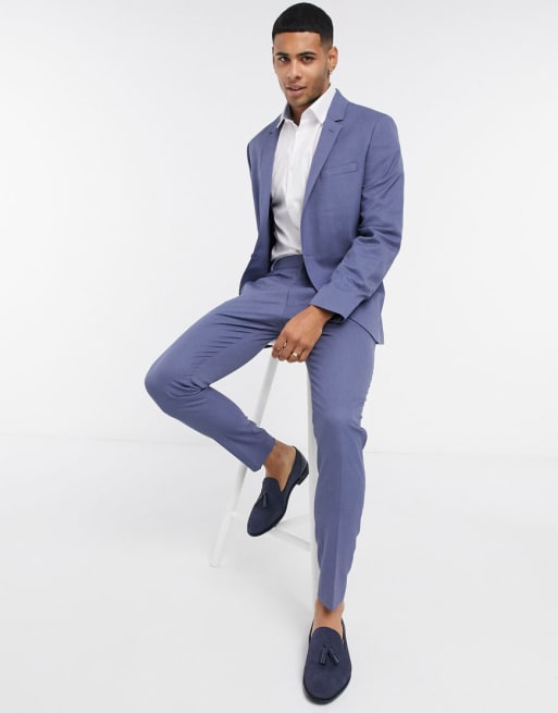 ASOS DESIGN Wedding – Mellanblå strukturerad kostym med extra smal passform