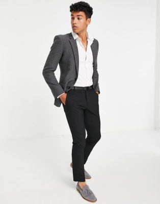 ASOS DESIGN Wedding – Mörkgrå fiskbensmönstrad kostym i ullblandat material