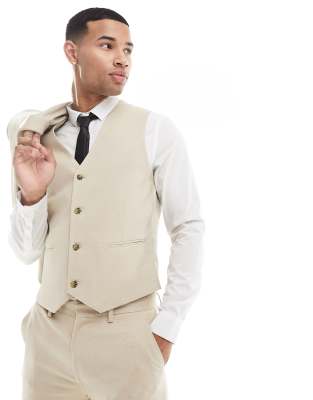 ASOS DESIGN Wedding – Sandfärgad kostymväst med extra smal passform