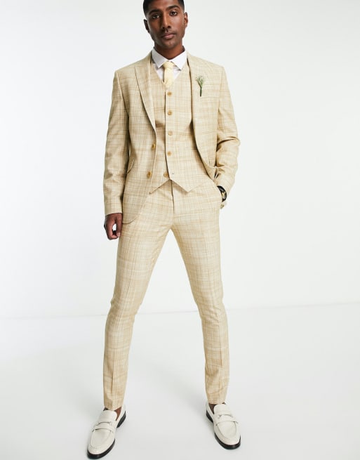 ASOS DESIGN Wedding – Stenfärgad, crosshatch-rutig kostym med smal passform